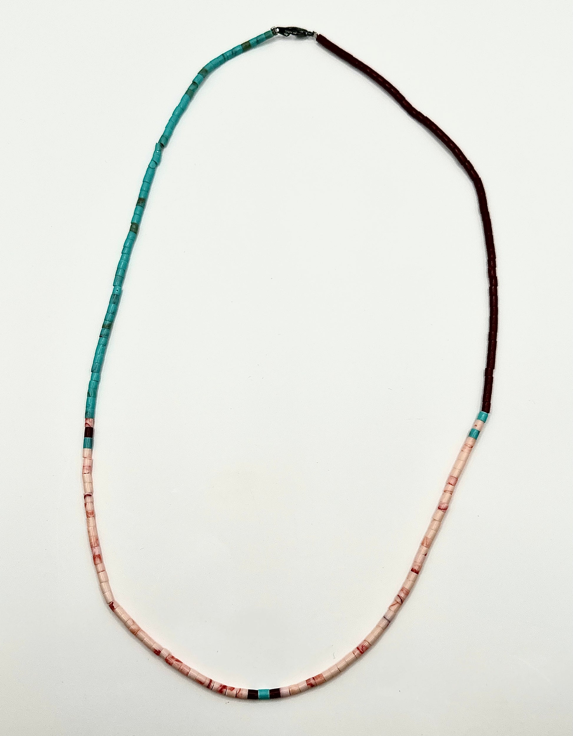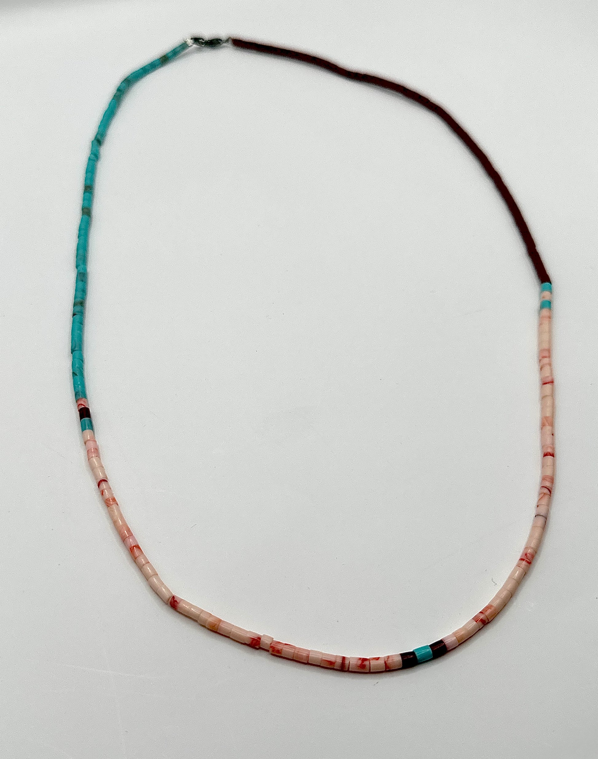 Turquoise color, salmon color and maroon beaded necklace